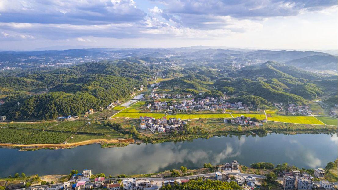 沙坪村风光。单位供图隆回县三阁司镇沙坪村,依郝水而生的一个美丽山村。在现代化新隆回建设的巨幅画卷中,如重生的古典美人,带着惊艳时光的古渡、古树、古井、古寺和乡村振兴的步步焕新,牵动着人们的脚步和念想。沿河而行,看到一棵华盖如云的古樟树,意味着沙坪村到了。古树立在古渡口,且不说主干,便是上端分出的枝桠,两三人牵手未必能合抱。据说旁边曾有一棵古柏树,传下来张小姐和白公子的爱情故事。现隆回县人民政府已对其挂牌保护,“身份证”年龄600岁。古渡口也作了一定修整,打造成休憩游玩的小景点。河岸边机器轰鸣,长达2.3公里的防洪大堤正在建设当中,预计今年10月完工。村干部介绍,旁边还将建设和污水处理工程配套的湿地公园,是县里的一个重点项目,不远处已有公司准备投资兴建养老中心、酒店。眼前100多亩连片的水蜜桃、黄桃基地6月1日开园,绿叶葱茏间垂挂着累累果实,吸引人们采摘。越过桃林,从两座石山间的道路走进去,似乎走进了桃花源的门。白墙黑顶的创意牌坊显示,这是“白羊山幸福院落”。
