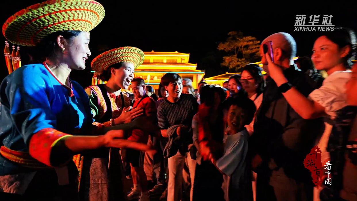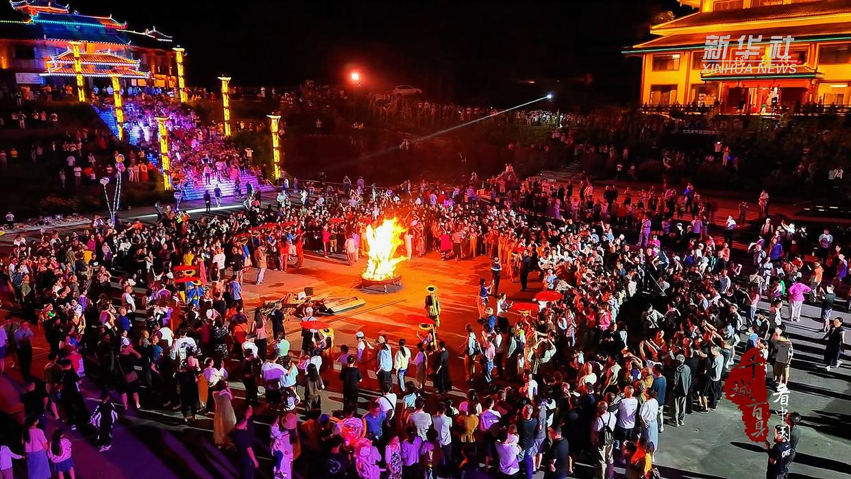 篝火映红脸庞,山歌点燃热情。近日,湖南省隆回县虎形山瑶族乡瑶王古寨的篝火晚会在平均海拔1300米的花瑶景区举行。身着盛装的花瑶姑娘手捧清甜的米酒,穿行于游客之间,以高亢悠扬的呜哇山歌传递着瑶乡人民的热忱问候。
