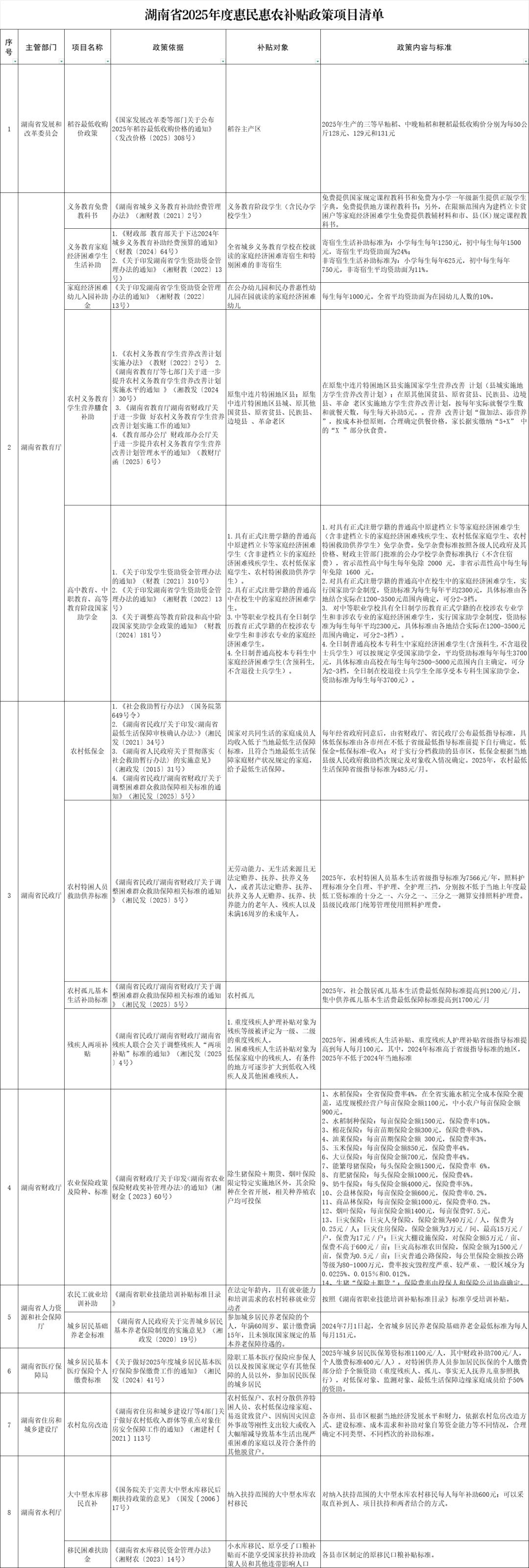 2025年惠民惠农补贴清单来了,多项标准提标扩面近日,湖南省农业农村厅正式发布《2025年惠民惠农补贴政策项目清单》,清单内容涉及农业生产、教育就业、民生医疗等多个领域的43项补贴政策,惠及广大农民和农业生产经营者,让农民获得感持续增强。农业补贴全方位。农业补贴政策涵盖耕地保护、粮油生产、养殖保障等多个方面。其中,稻谷目标价格补贴继续实施,耕地地力保护补贴原则上不低于95元每亩,最高可达114元每亩。