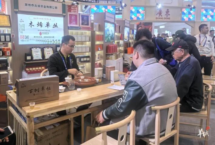 潮州市木烯茶业的展位前宾客络绎不绝。羊城晚报记者 许悦 摄