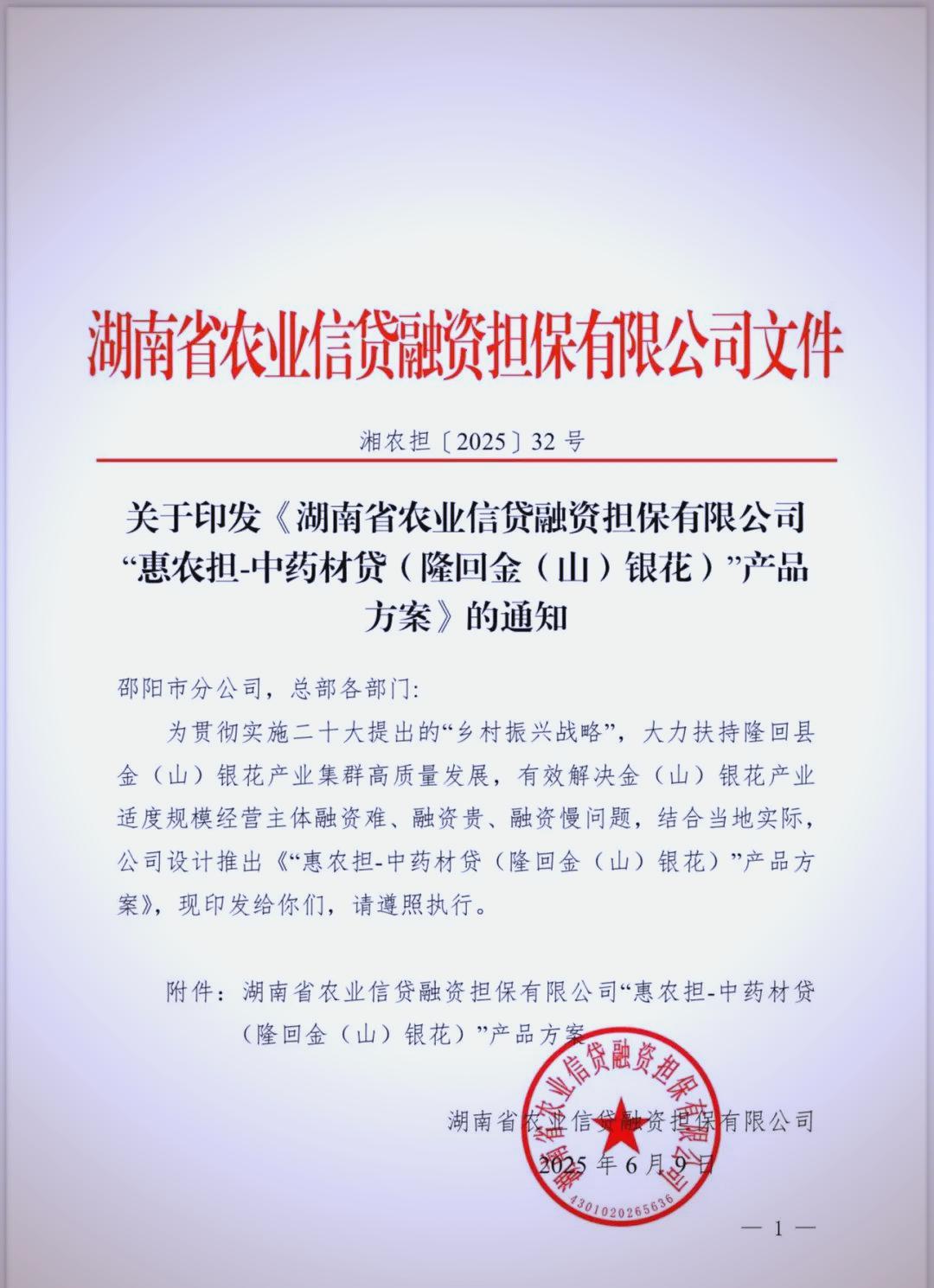 湖南农担在6月10日正式推出了“惠农担—中药材贷(隆回金(山)银花)”特色金融产品,这标志着其“一县一特”金融产品体系的进一步丰富。该体系已为湖南省14个县域特色产业量身定制了专属的担保产品,累计支持了1400家农业经营主体,提供贷款金额达到13.54亿元。这一系列金融产品为县域特色农业的发展提供了精准有效的支持,有力助推了乡村振兴战略的实施。